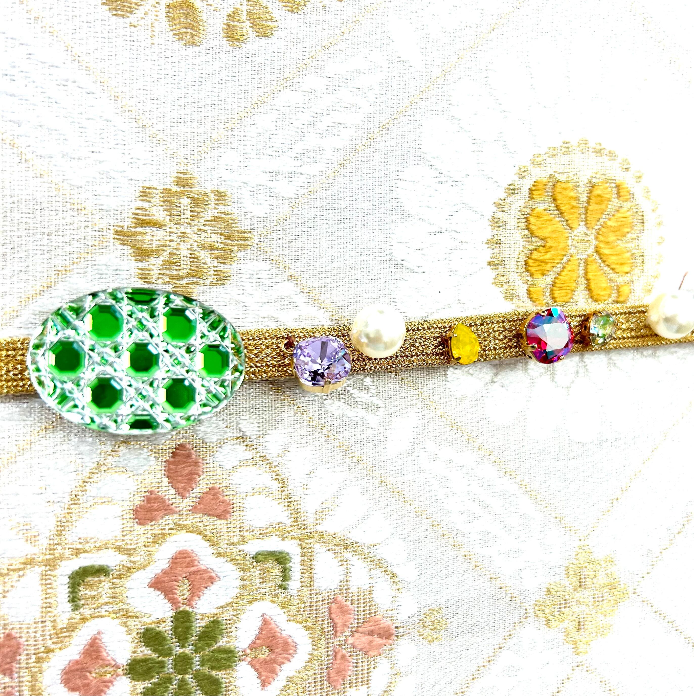 東京切子帯留め オーバル しあわせ籠目 ライトグリーン