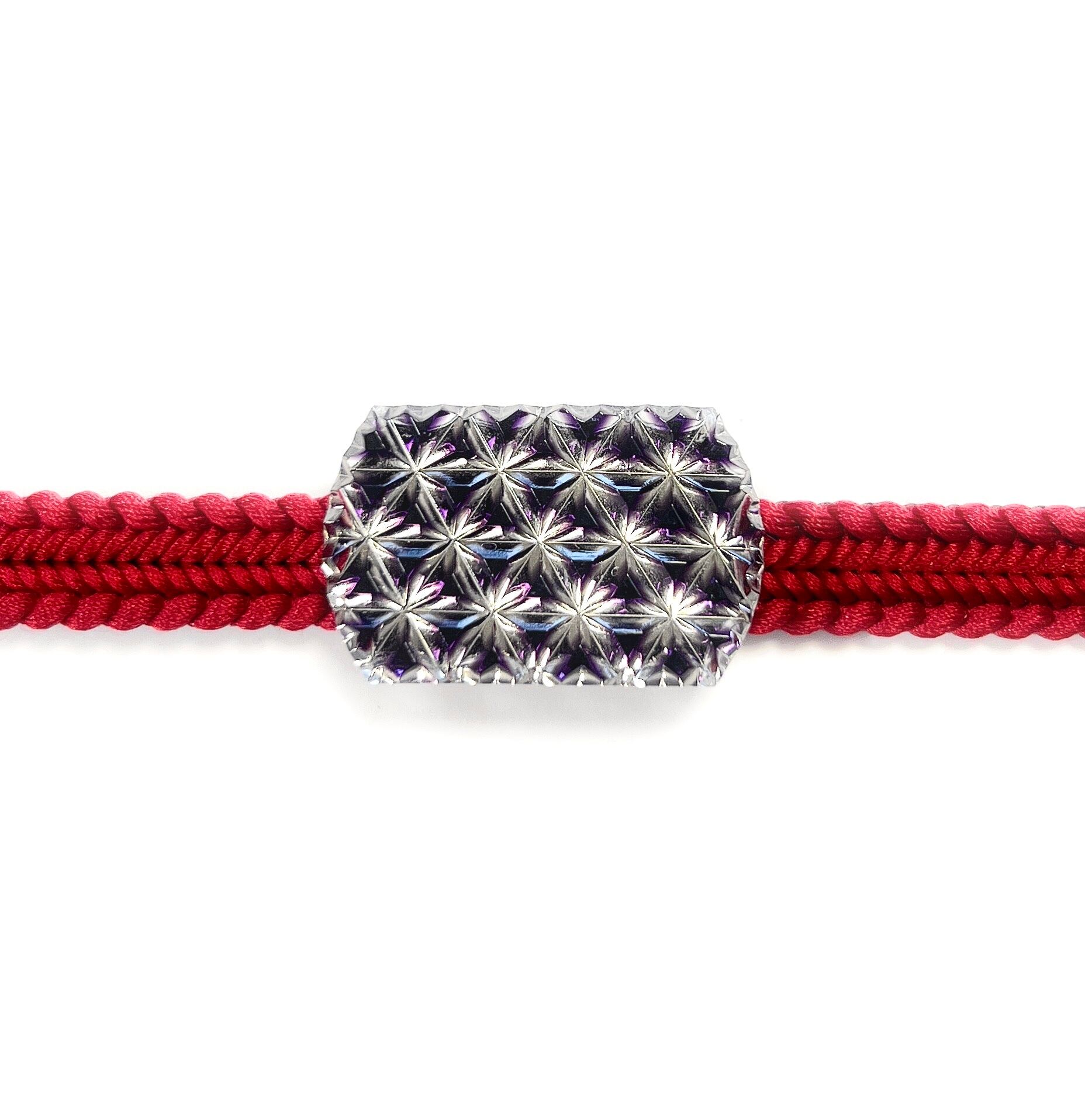 東京切子帯留め お太鼓 麻乃葉六角 紫