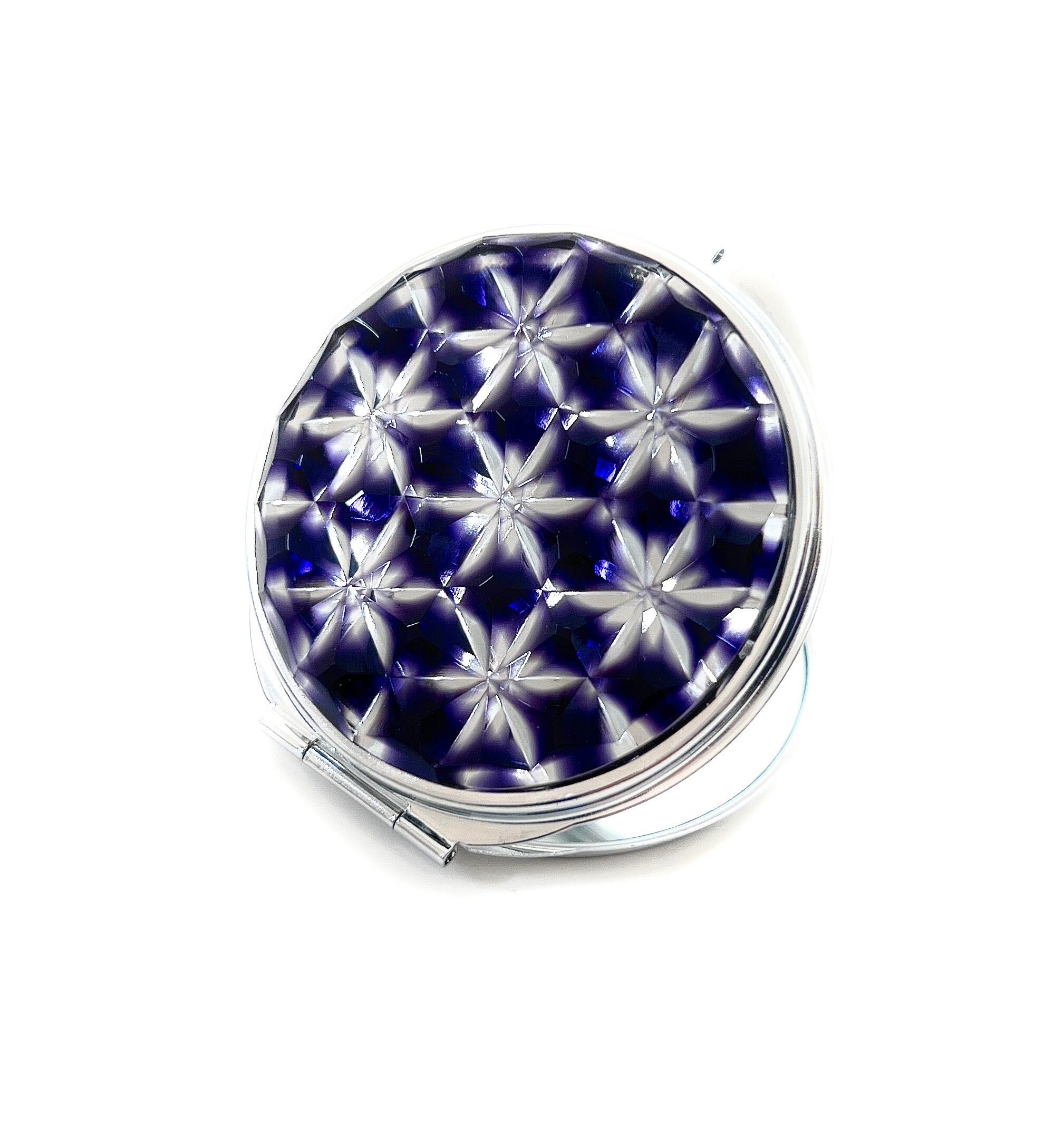 「魔法のミラー」東京切子コンパクトミラー フラワー・オブ・ライフ 紫 Silver