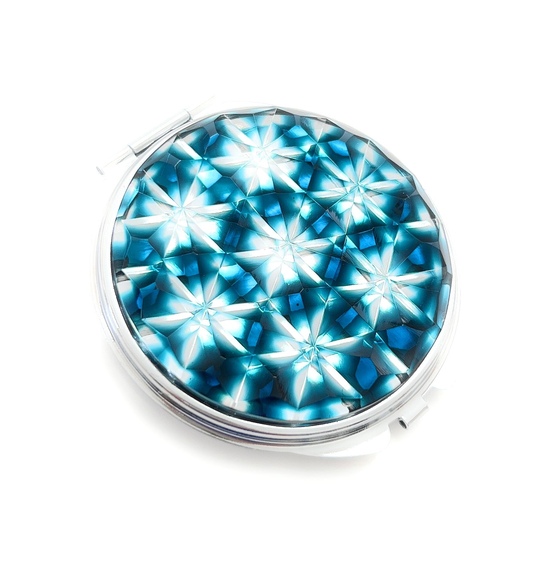 「魔法のミラー」東京切子コンパクトミラー フラワー・オブ・ライフ ダークブルー Silver