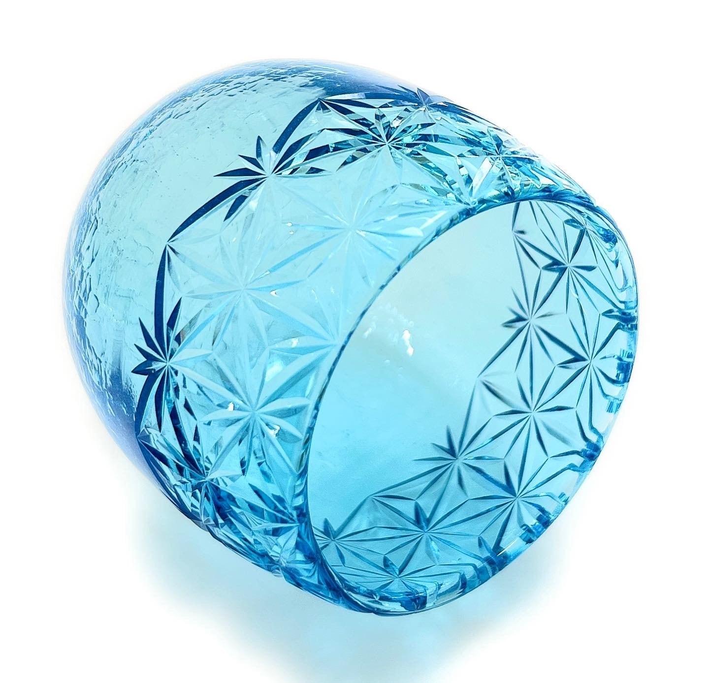 手磨きで丁寧に艶出し加工をされた上部の切子部分と、クラッシュ加工が施されたグラスの下部分のコントラストは、キラキラ°˖✧✧˖°大好き女子ならば目が♥になってしまいます♪