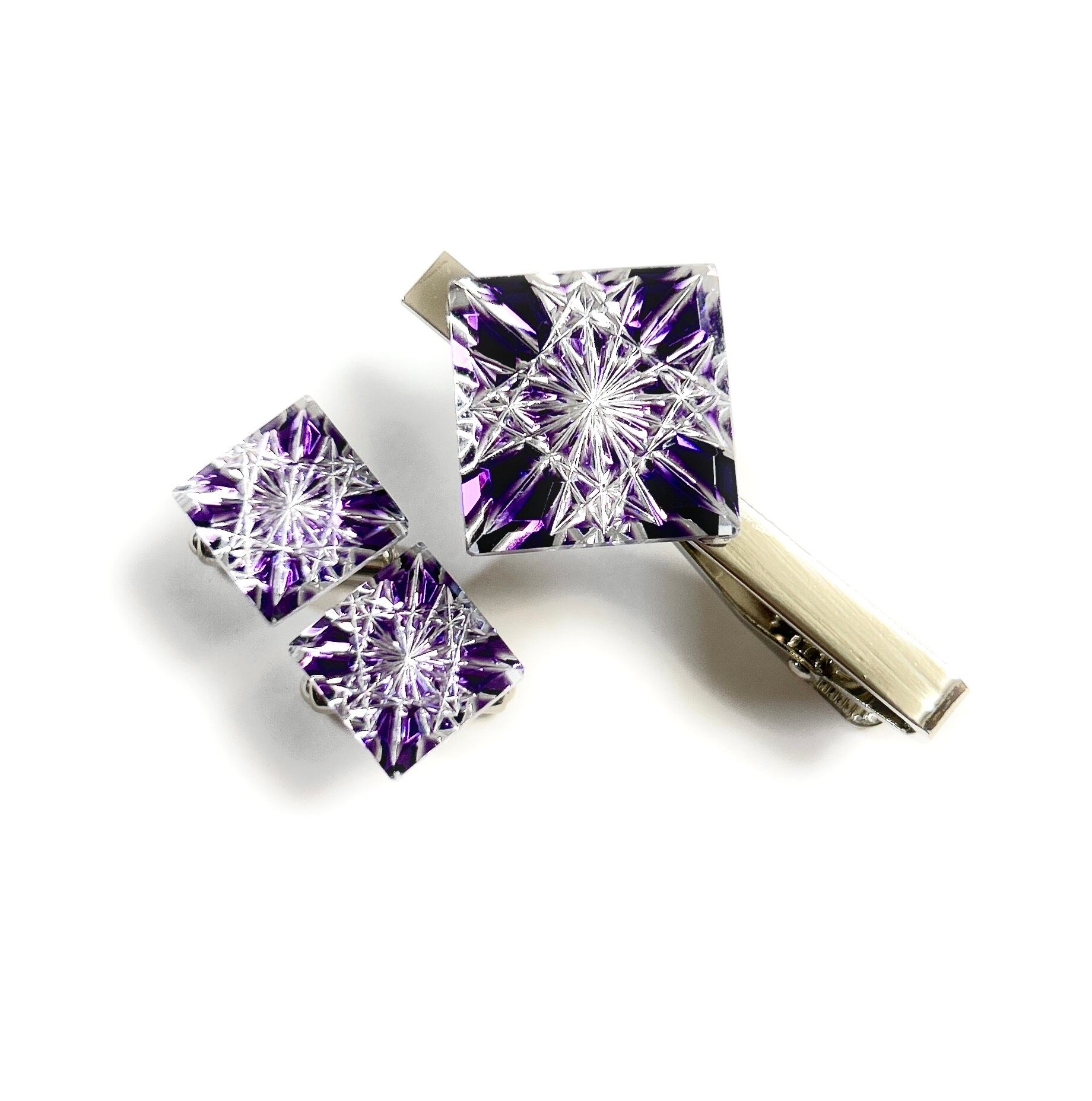 「吉祥・極楽」東京切子タイピン・カフスセット 瑞雲 紫