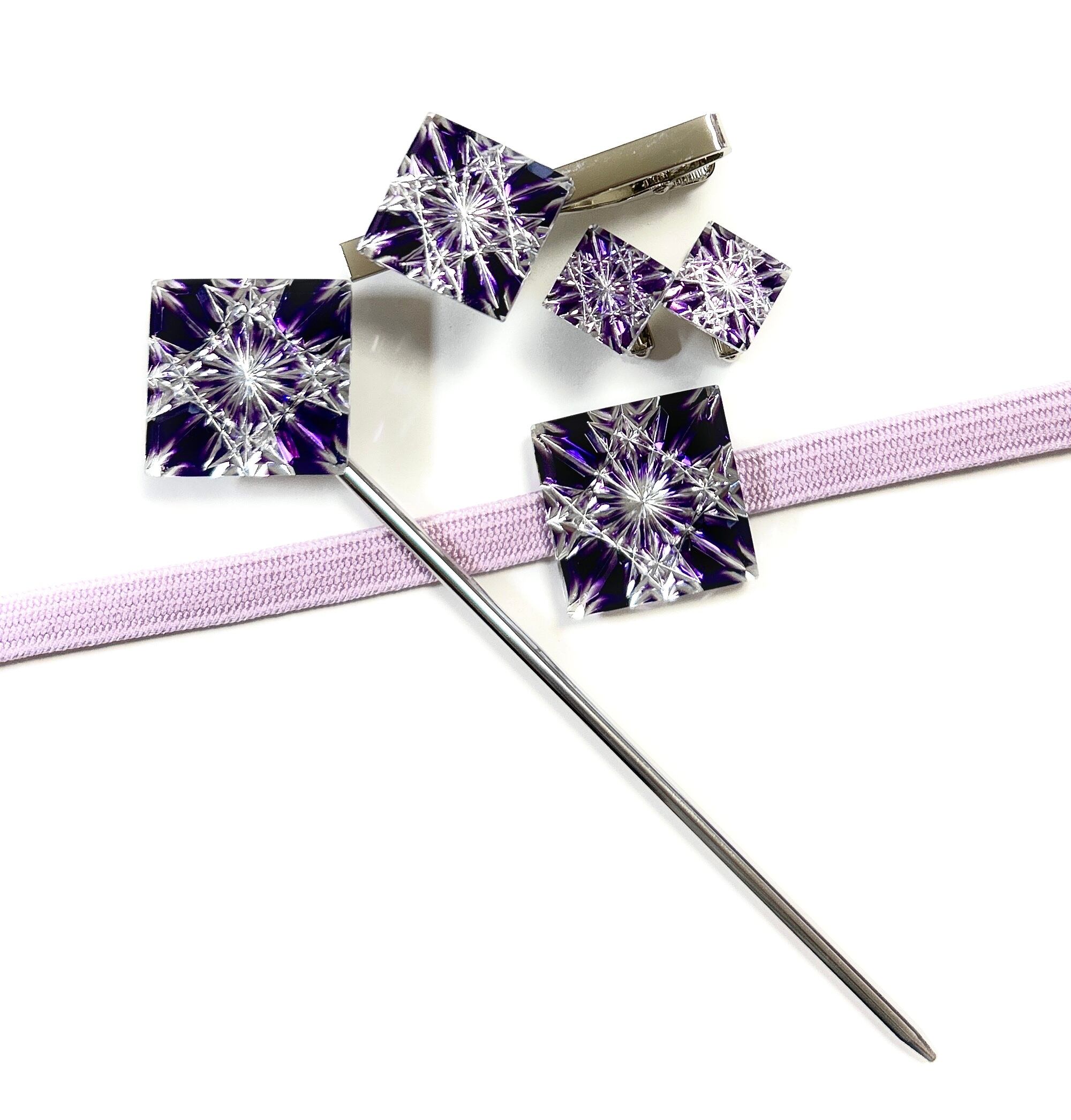 「吉祥・極楽」東京切子タイピン 瑞雲 ダークブルー