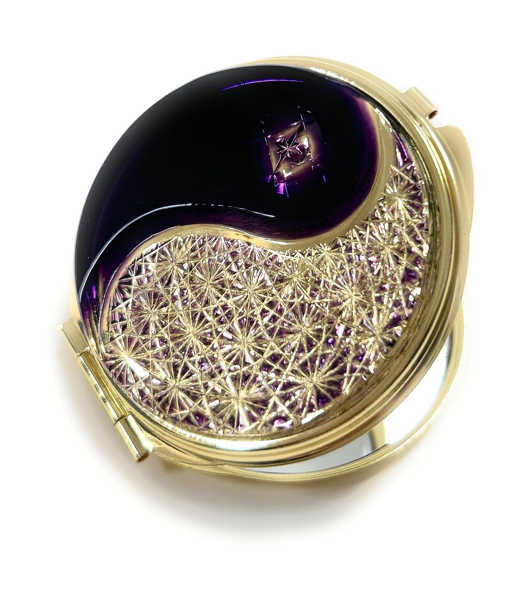「太極図」東京切子コンパクトミラー 紫 ゴールド