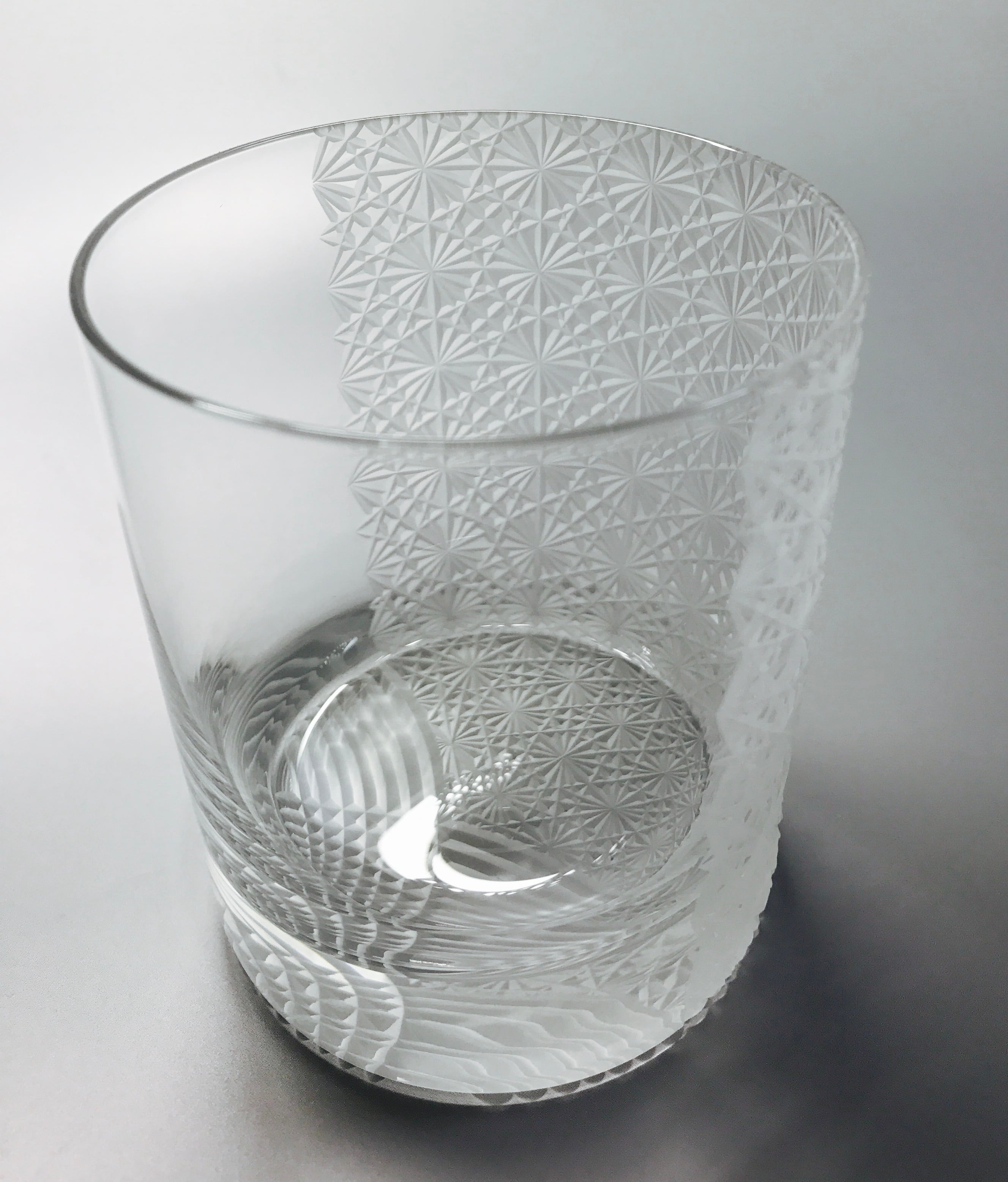 イタリア製のクリスタルグラスに、職人技を彫り込みました。