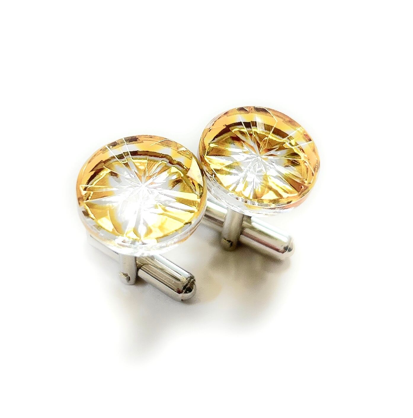 ”伝統技法と現代技術”が融合した、伝統柄の菊のシャープなカットが美しい切子のカフスボタン。