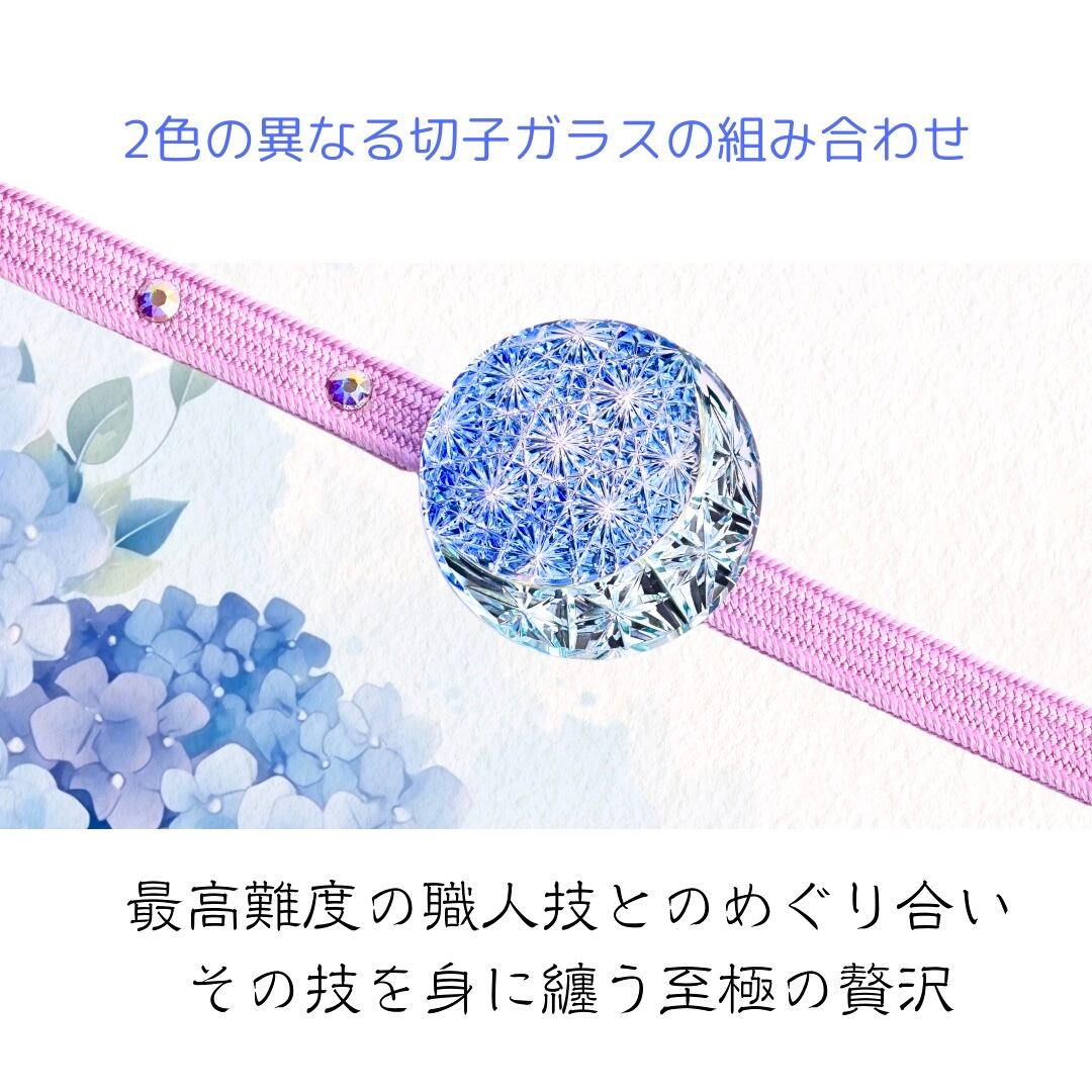 青のガラスに彫られた菊繋ぎは、長寿や幸福を意味し、皇室の象徴。