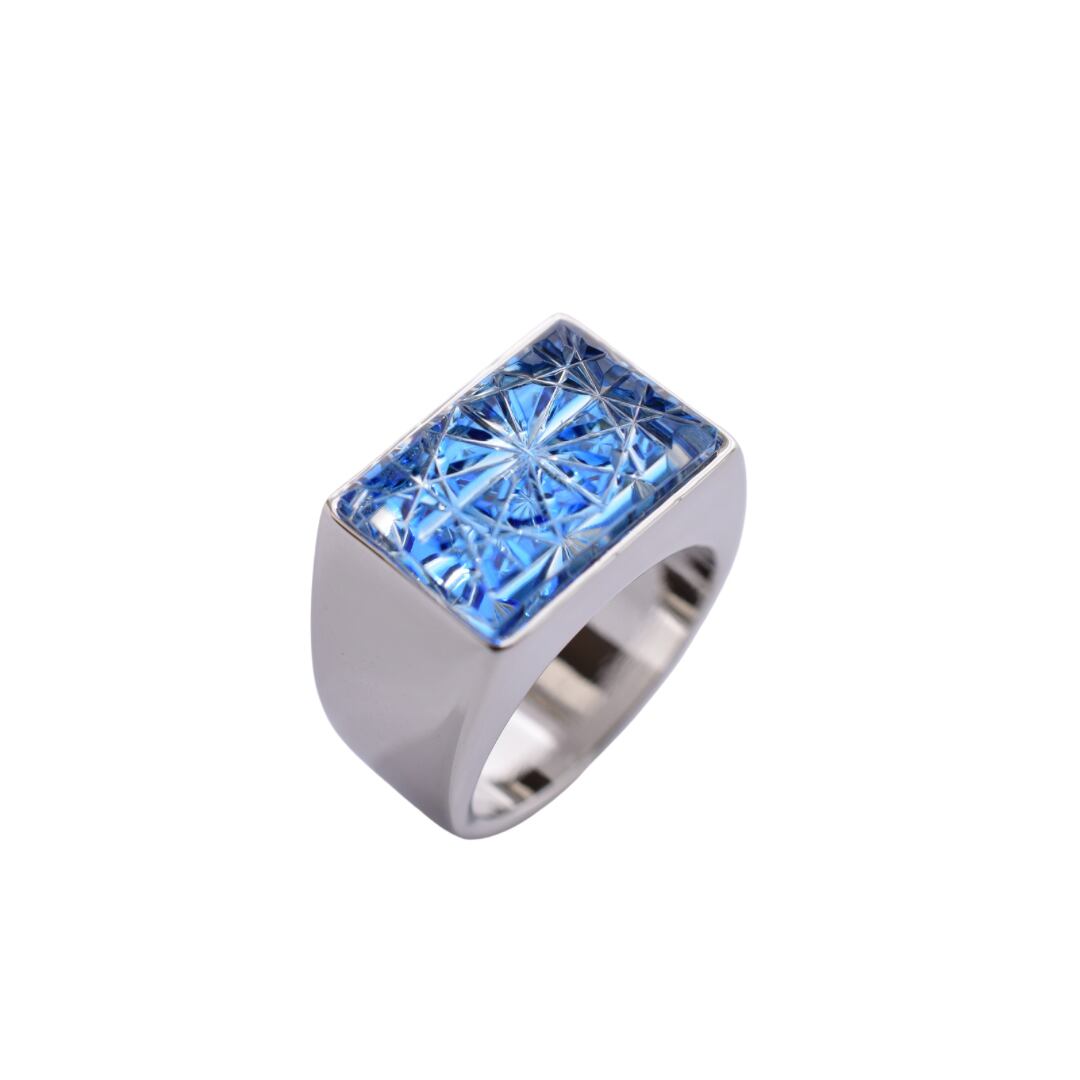 繊細な切子模様と美しい蒼色が特徴のリングです。