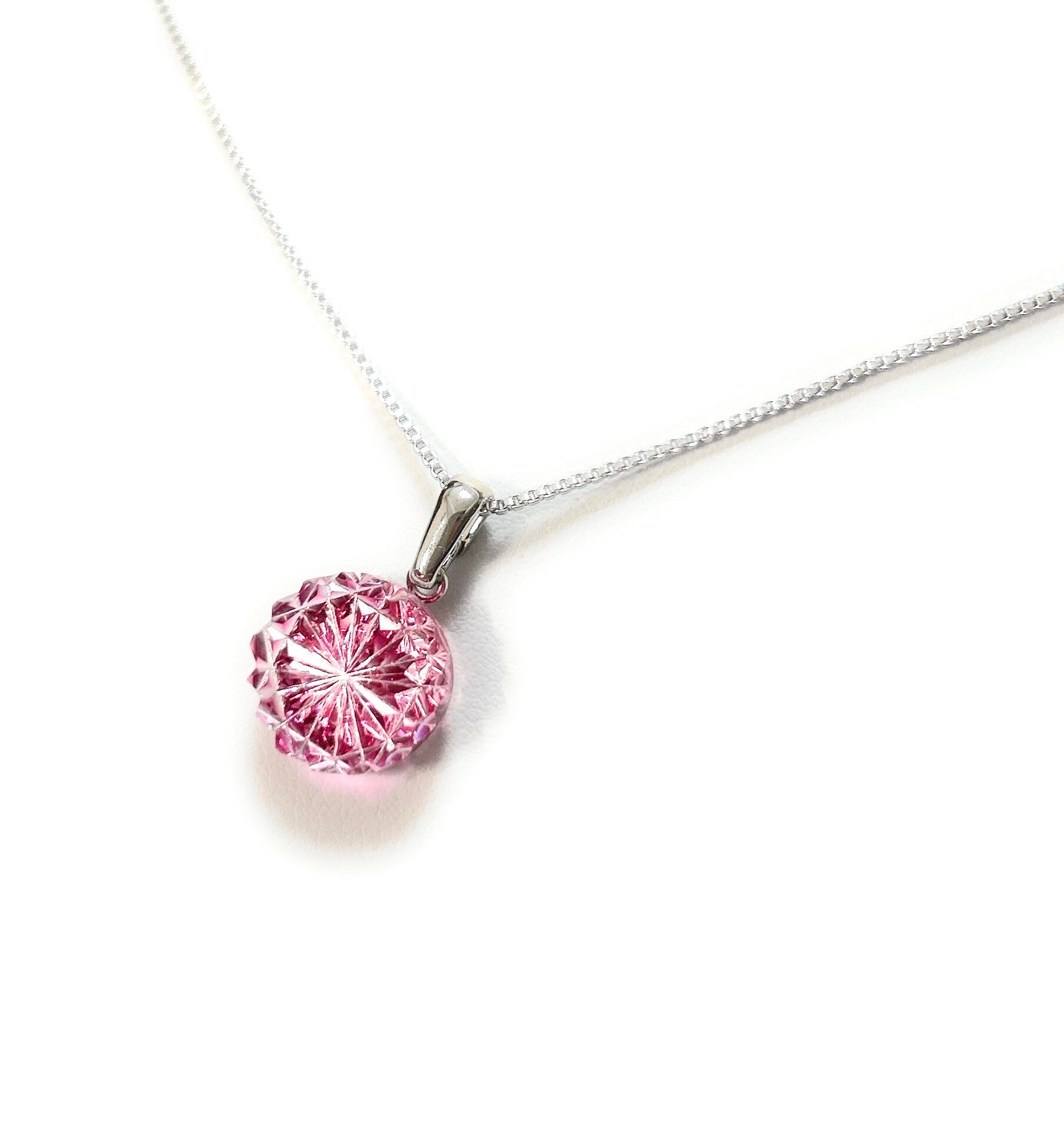 そこで、チェーンはシルバー925の上質なもの、ガラスを覆う金物は一般的なパーツで、お手頃にお作りしました。