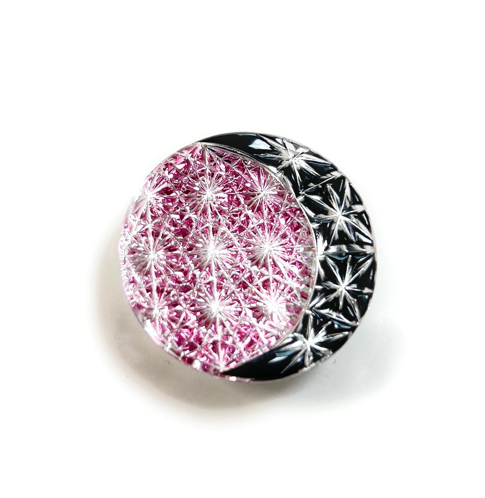 お月様の端っこが細く繊細で割れやすい為、お月様形に切り出しただけで割れてしまう、手磨きでツヤを出すと熱で割れてしまう等など、大変な工程を経て組合わされました。