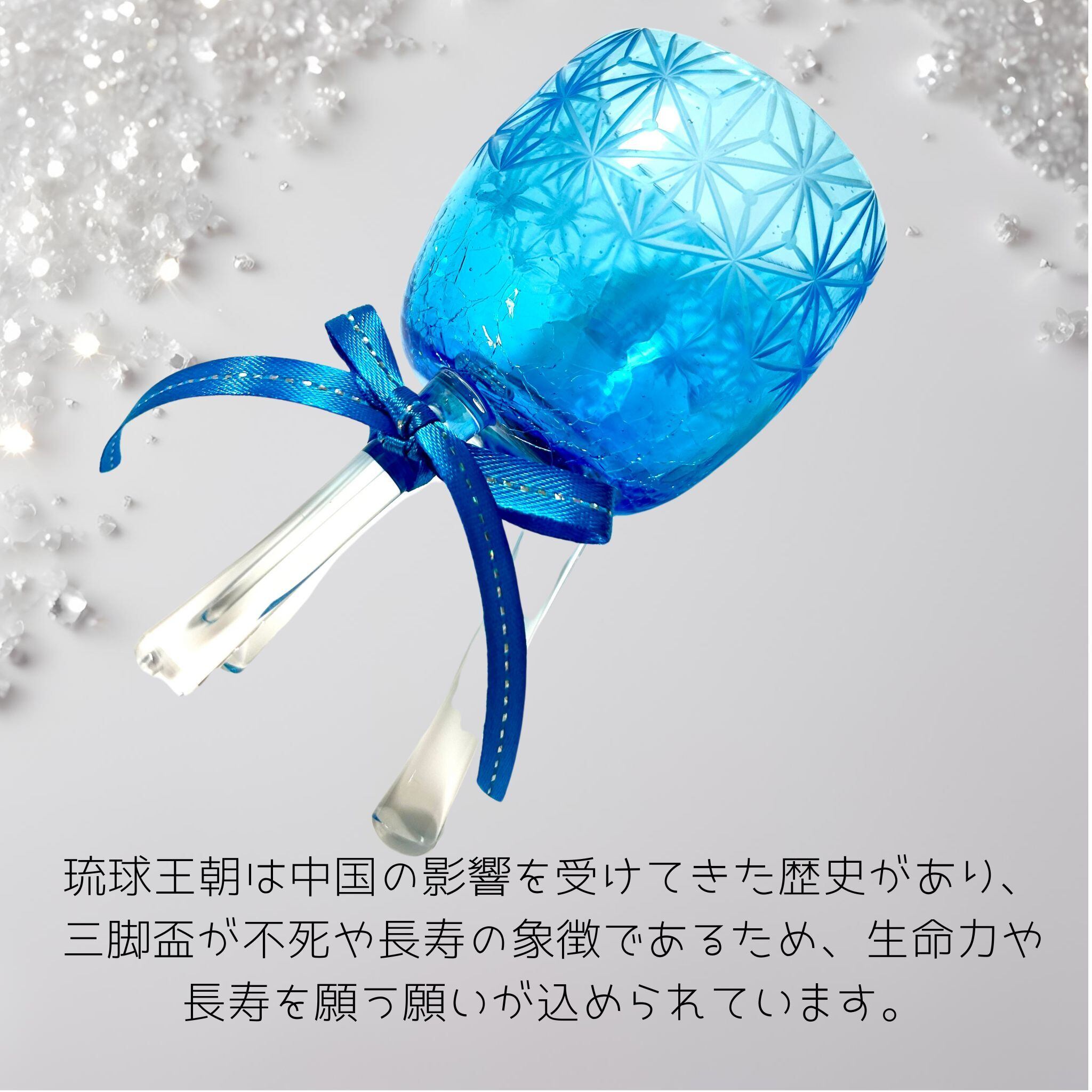 琉球王朝は中国の影響を強く受けて発展してきた歴史があり、三脚盃を取り入れることで、この文化的つながりを再認識し、三脚盃が不死や長寿の象徴であるため、生命力や長寿を願う願いが込められています。