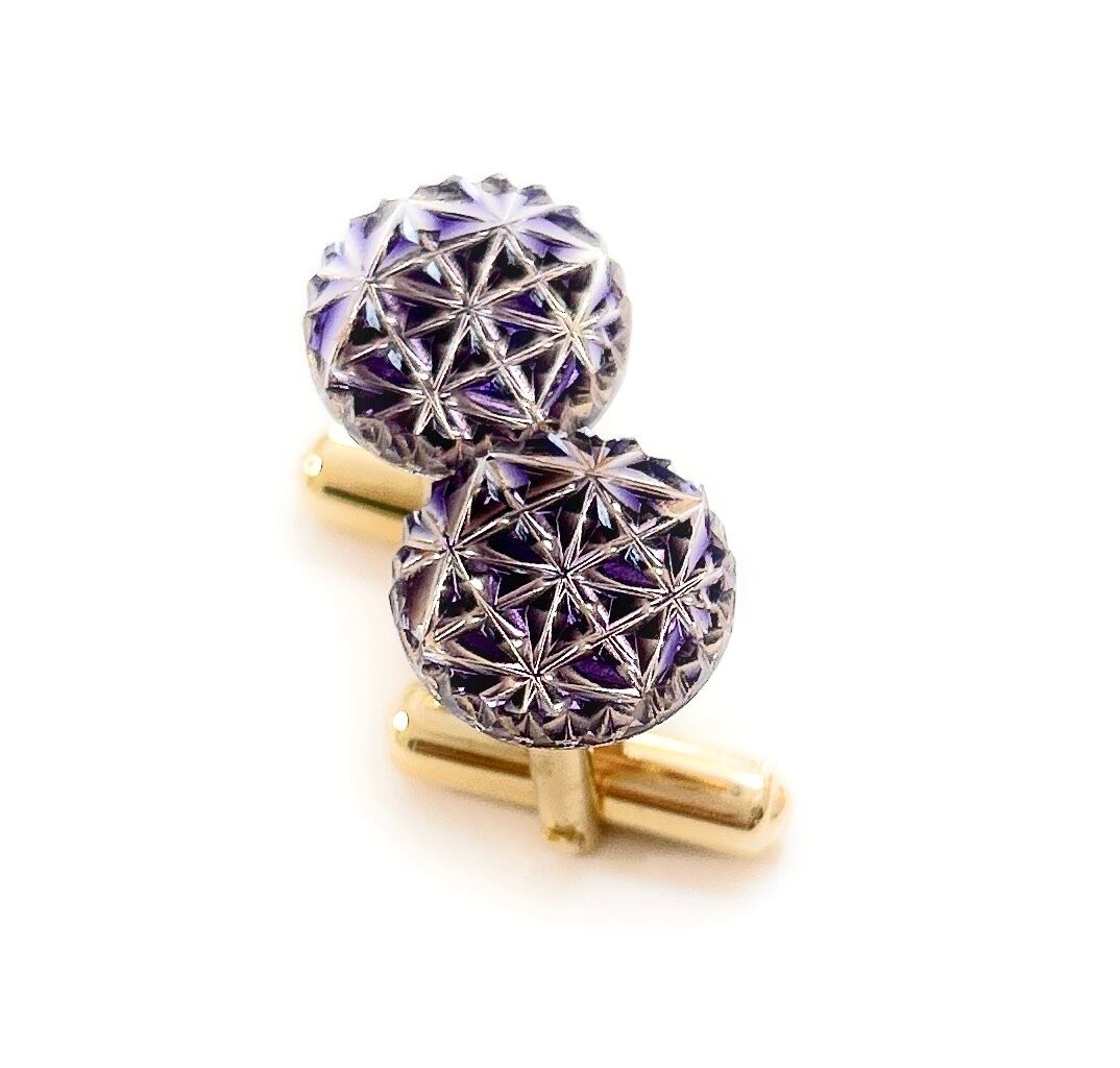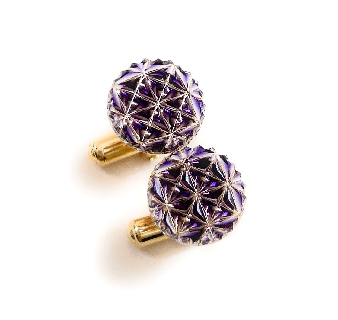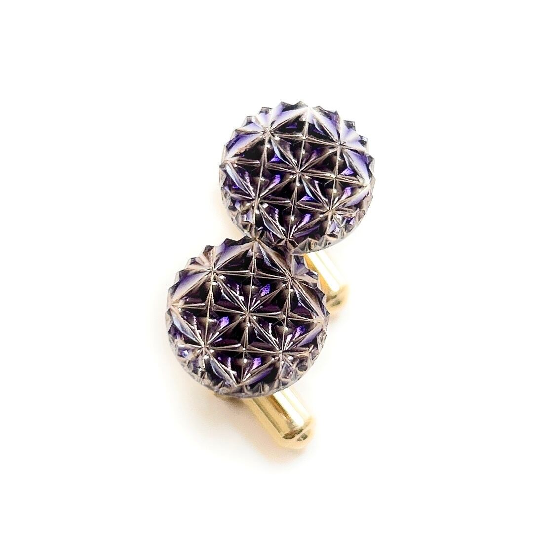 東京切子カフスボタン 麻乃葉 パープル・ゴールド(手磨き)